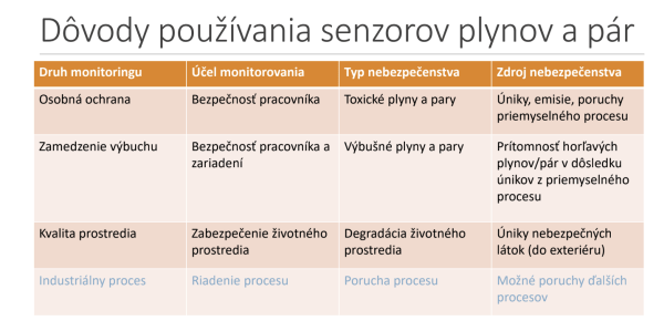 Vybrané oblasti nasadenia detektorov plynov a pár: